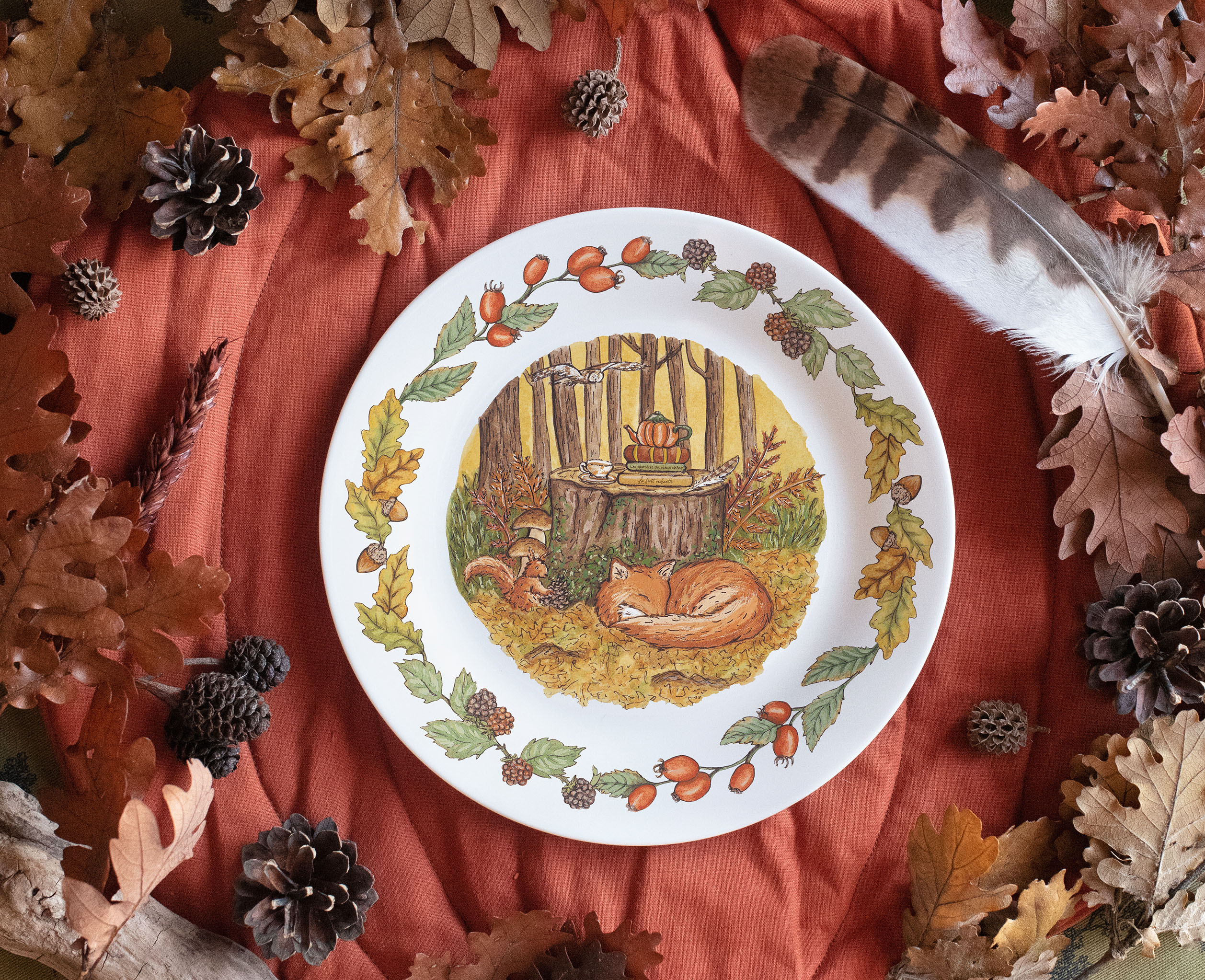 L'assiette pour déguster un bon cinnamon roll ou une part de cake aux amandes, tout en voyageant dans la forêt.